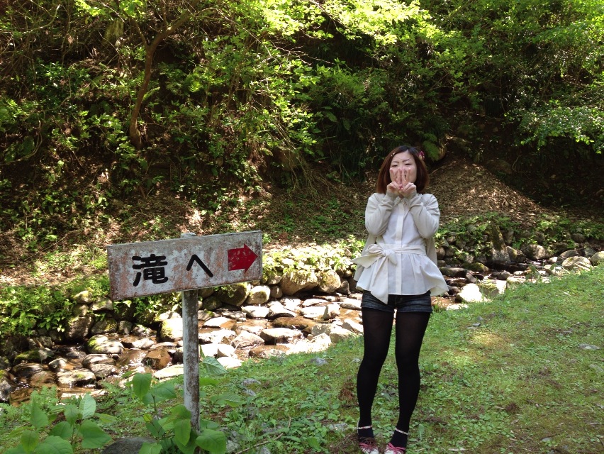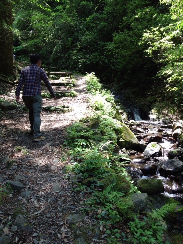 山道は結構急斜面で、思いのほか滝まで遠く、